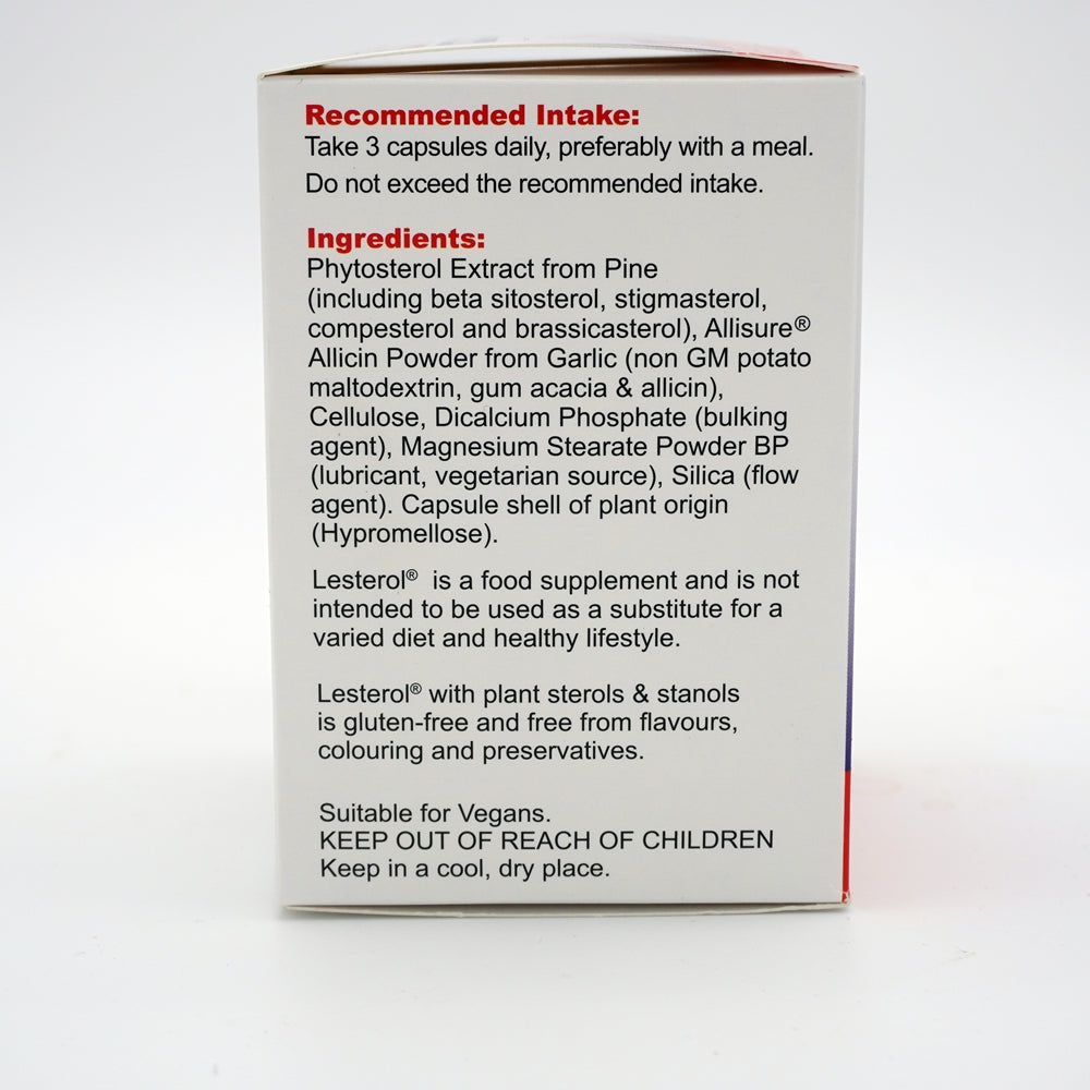 Plant sterols and stanols contribute to the maintenance of normal blood cholesterol levels. The beneficial effect of plant sterols and stanols is obtained with a daily intake of at least 800mg of LESTEROL® capsules.