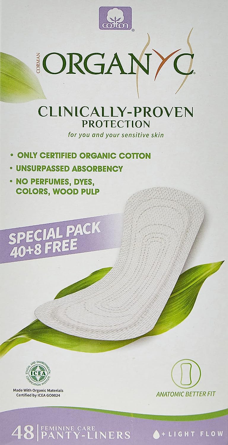 ORGANYC Organic Cotton Panty Liners Flat Light Flow Special Pack, 40 + 8 Free Pack of 2